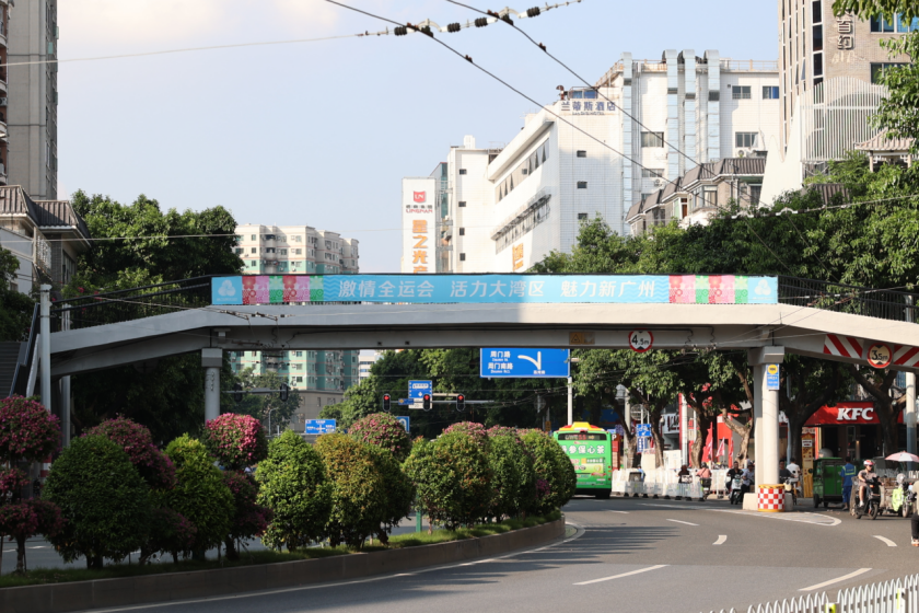 荔湾路、中山七路等人行天桥上,醒目的横幅传递着对盛会的期待。