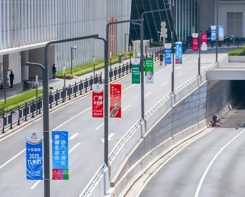 荔湾还将全运氛围延伸至城市的每一个角落。在东风西路、中山七路、中山八路、康王路、芳村大道、花地大道等核心路段,全运主题道旗沿街道渐次铺开,成为靓丽的 “全运风景线”。